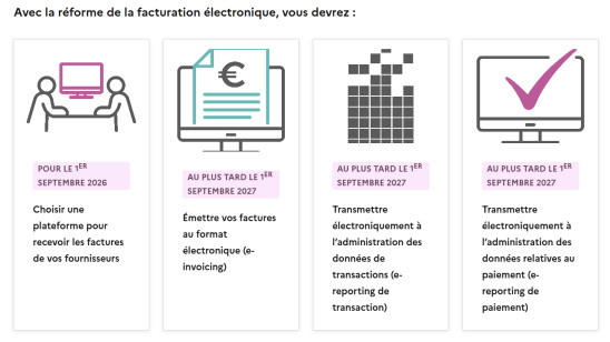 Un outil dédié à vous indiquer vos nouvelles obligations en matière de facturation électronique en fonction de votre activité et de votre situation suite à la réforme (RFE). Répondez à quelques questions pour obtenir un récapitulatif des changements qui vous concernent.