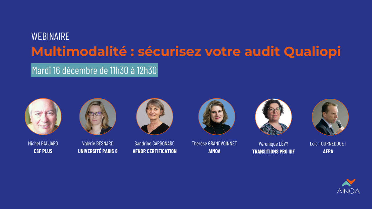 À l’occasion de la publication du nouveau guide « Qualiopi et la formation multimodale », entièrement repensé en 2025, AINOA vous propose un webinaire dédié aux enjeux de qualité dans les dispositifs hybrides et FOAD.